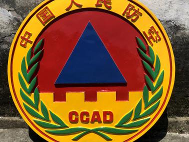 中国人民防空徽由文字和图案两部分构成,其基本含义是中国人民防空。文字“CCAD”是英文 Chinese Civil Air Defence(中国人民防空)的缩写。图案的金黄色外框为
